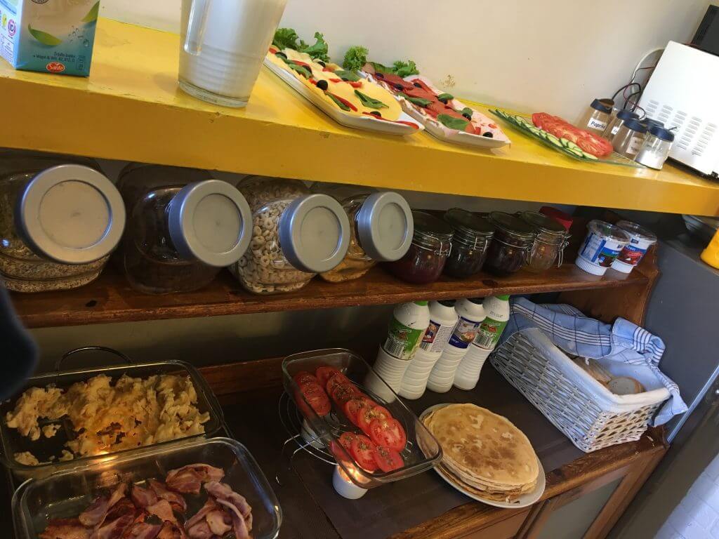 内容はベーコン、スクランブルエッグ、ハム、チーズ、トマト、食パン、クレープ、ホットケーキ、ベーグル、数種類のシリアルなどがあり、かなり充実していました。