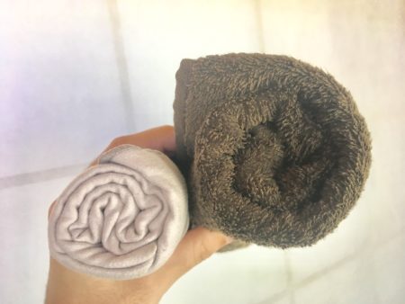 タオルは1000円ぐらいで買えるので、速乾タオルがへたってきたら新しいものに買い換えるようにしましょう。